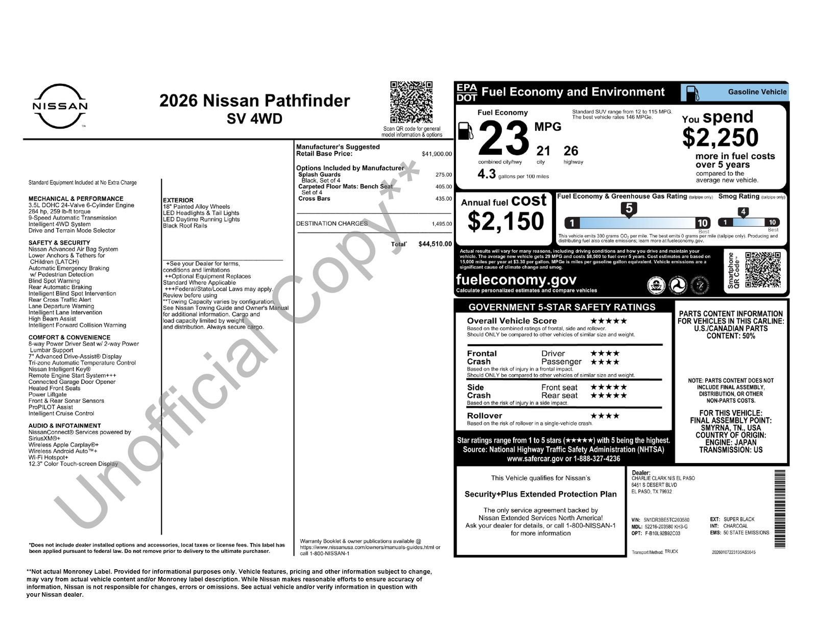 - Fuel Economy Est-Combined (MPG): 23 (2025)